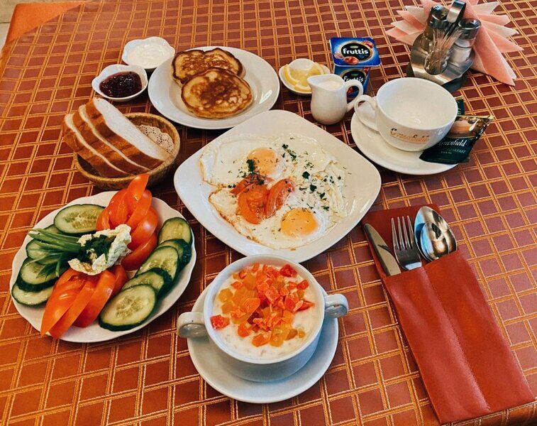 Короткий отпуск с друзьямиЧистота в окружении вкуснотыотличное место в центре Сергеева Посада на ресторанной улице Имеется стоянка для авто. Завтраки достаточно плотные, но без излишеств Белье отличного качества и чистоты Хорошие мыльно-рыльные принадлежности Из минусиков: узкие лестницы достаточно крутые, это понятно зданию более 200 лет!
