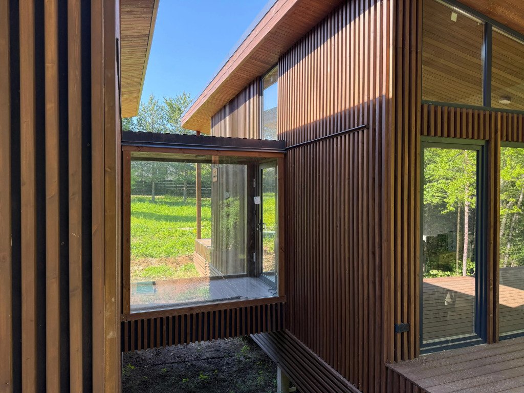 На участке: 2 отдельные мангальные зоны, по одной у каждой части дома; парковка на 5–6 машин.
