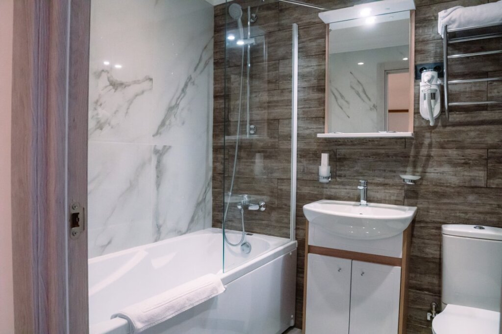 Чтобы вы могли отдохнуть после долгого дня, в номере есть телевизор и халат. Оснащение зависит от выбранной категории номера.