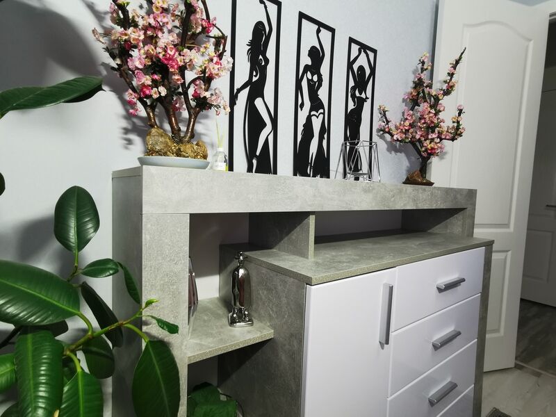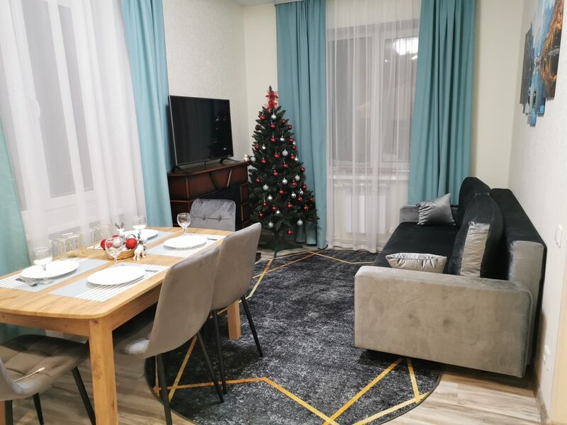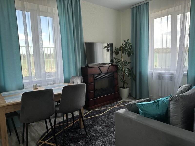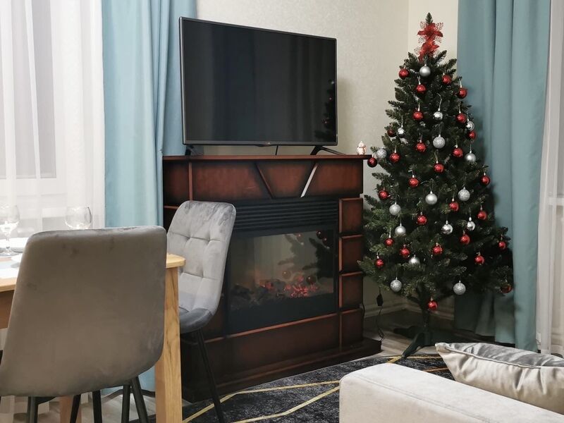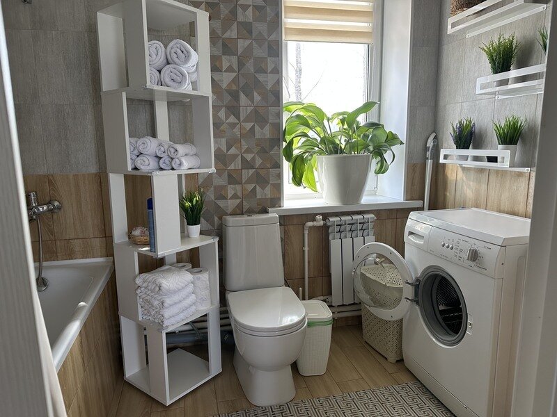 - стиральная машина, телевизор со смарт ТV, электрокамин, фен, утюг, гладильная доска, Wi-Fi.