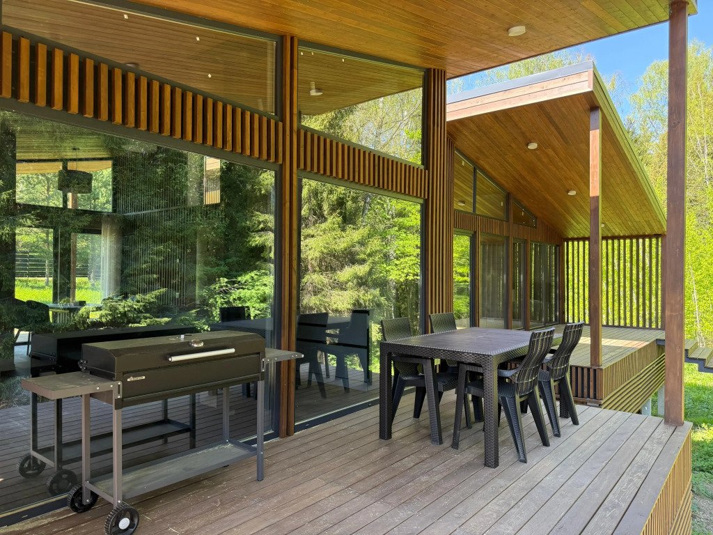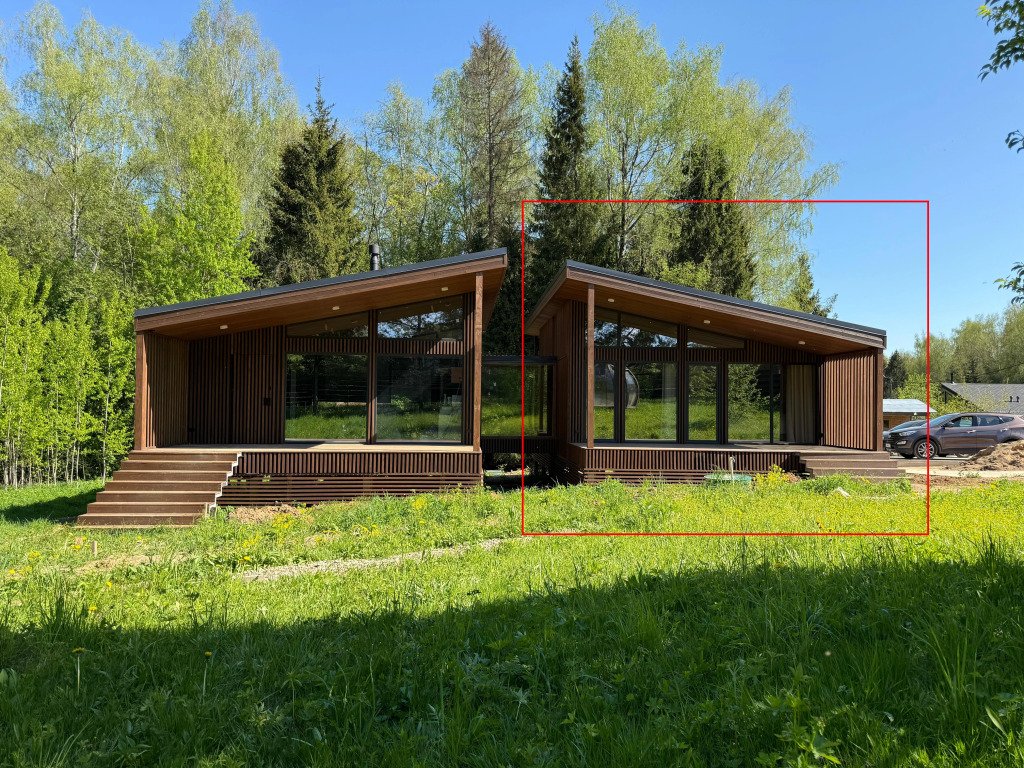 В доме допускается строго не более 4 гостей, включая детей старше 3 лет. В частном доме: спальня — спальное место 160×200, кухня-гостиная — раскладной диван 140×200, Wi-Fi, Smart-TV, плита, холодильник, микроволновая печь, посудомоечная машина, стиральная машина, электрический чайник, дровяная печь, фен, вентилятор, игровая консоль, полотенца, постельные принадлежности, средства гигиены, посуда, кухонная утварь. На участке есть зона барбекю, угли и розжиг можно приобрести у объекта размещения, парковка на 5-6 машин.