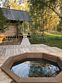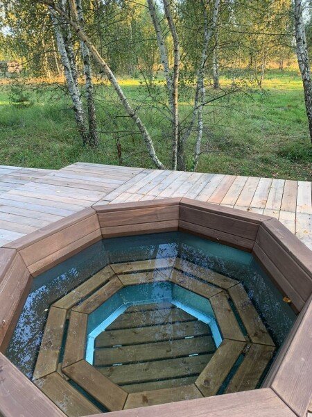 К каждому домику пристоен в некотором отдалении среди деревьев чан. Наполняется он чистейшей родниковой водой и топится березовыми дровами.