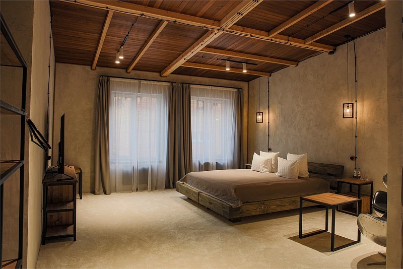 Номер расположен в отдельно стоящем одноэтажном корпусе Лофт, идеально подходит для длительного проживания и отдыха. Все номера отличаются друг от друга дизайном.