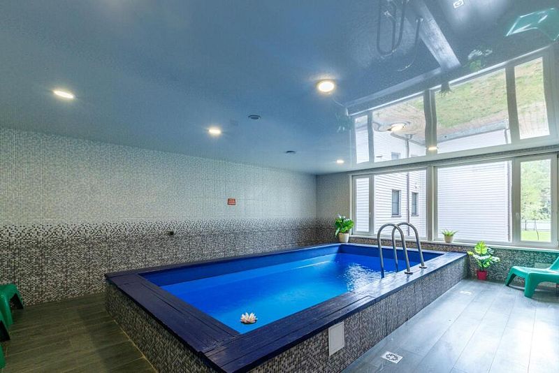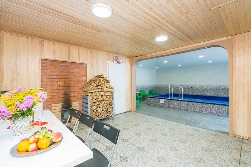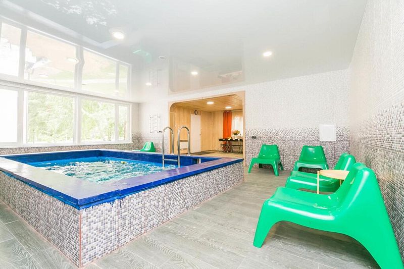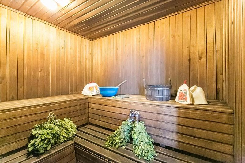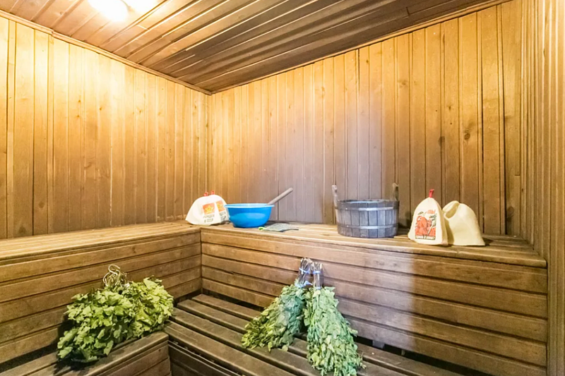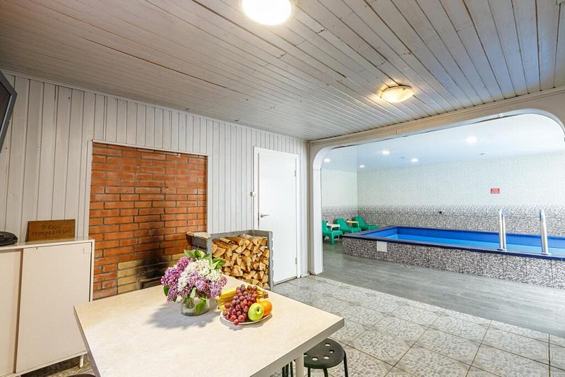 Баня находится вместе с бассейном в отдельном здании. В стоимость входит комплекс баня + бассейн. Пользование безлимитное.