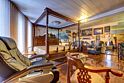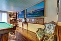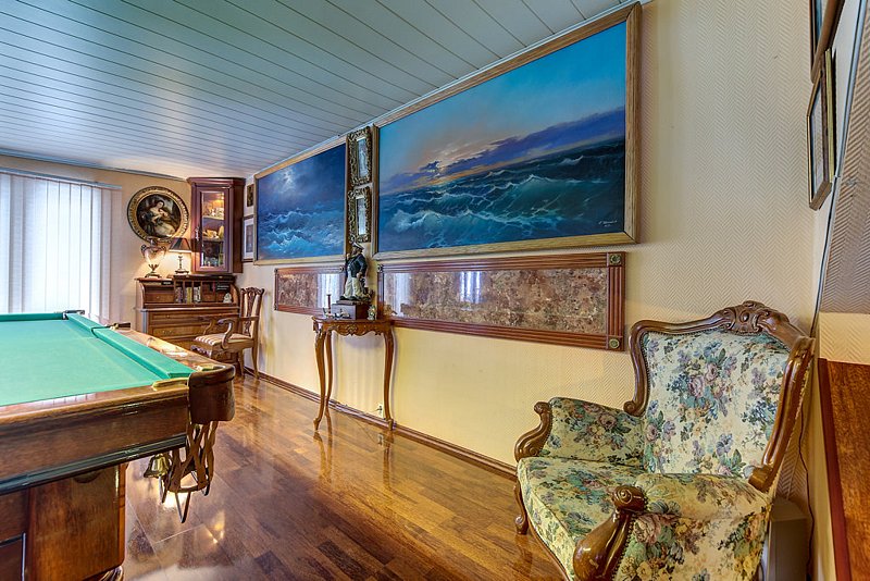 Двухэтажное здание с панорамными окнами и балконами. Комфортен для пары, семьи или близкой компании до 5 человек. Есть дровяная баня-сауна (растапливается под заказ без ограничения по времени), камин-кассетник на дровах, профессиональный бильярд, мини-бассейн, массажное кресло (нефрит, турмалин), дартс. Мангал, барбекю гриль. Раскладывающийся угловой диван, 2 стола, 5 кресел, диванчик, письменный стол, канапе, королевская огромная кровать с колоннами (200х200), односпальная кровать.