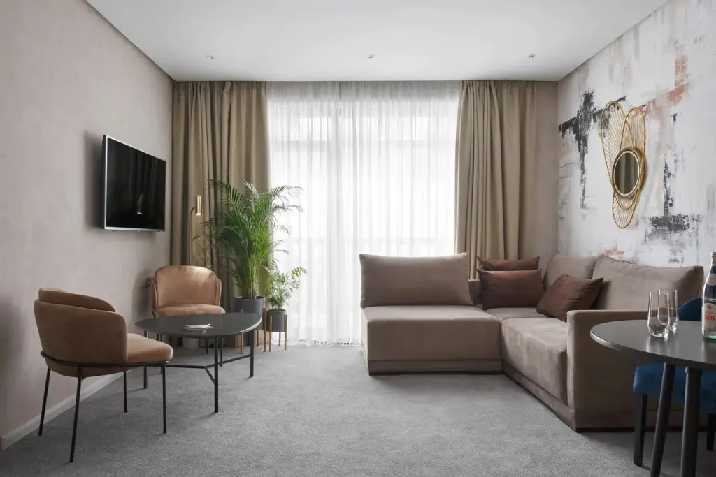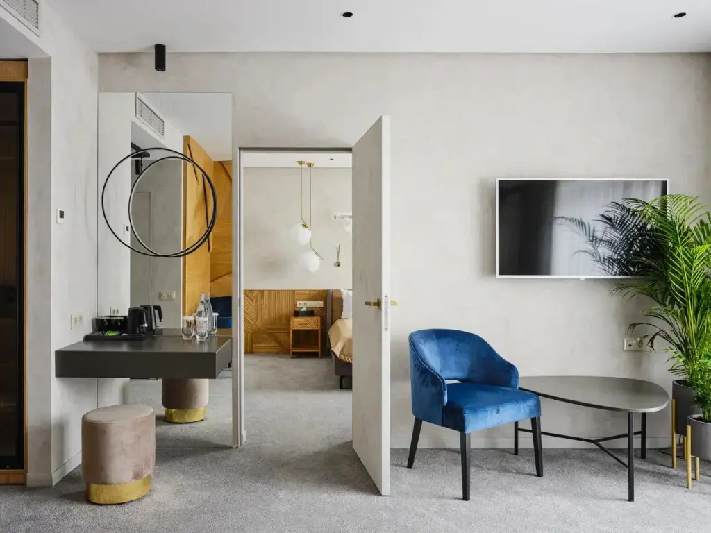 Чтобы вы могли отдохнуть после долгого дня, в номере есть телевизор и халат. Перечисленные услуги есть не во всех номерах.