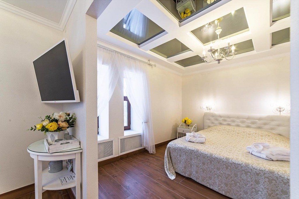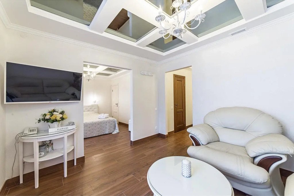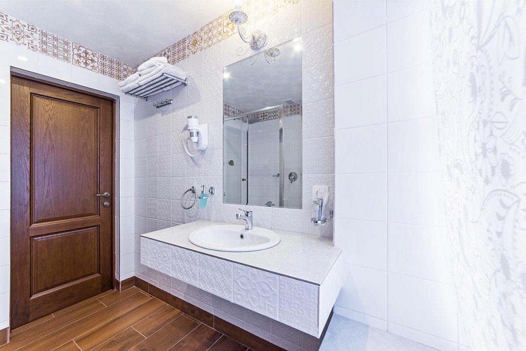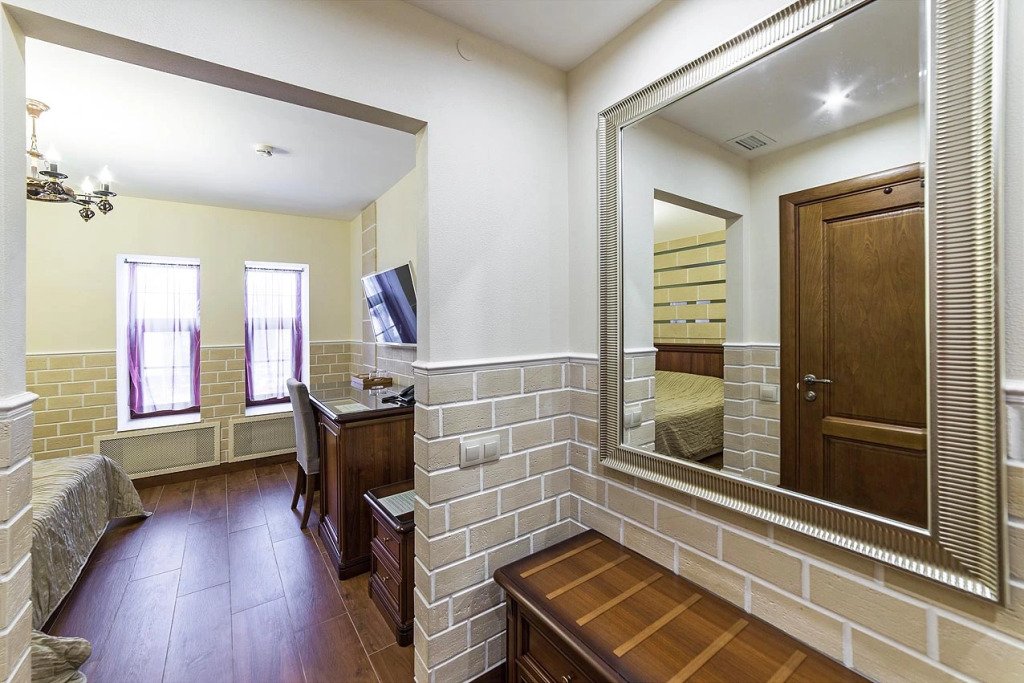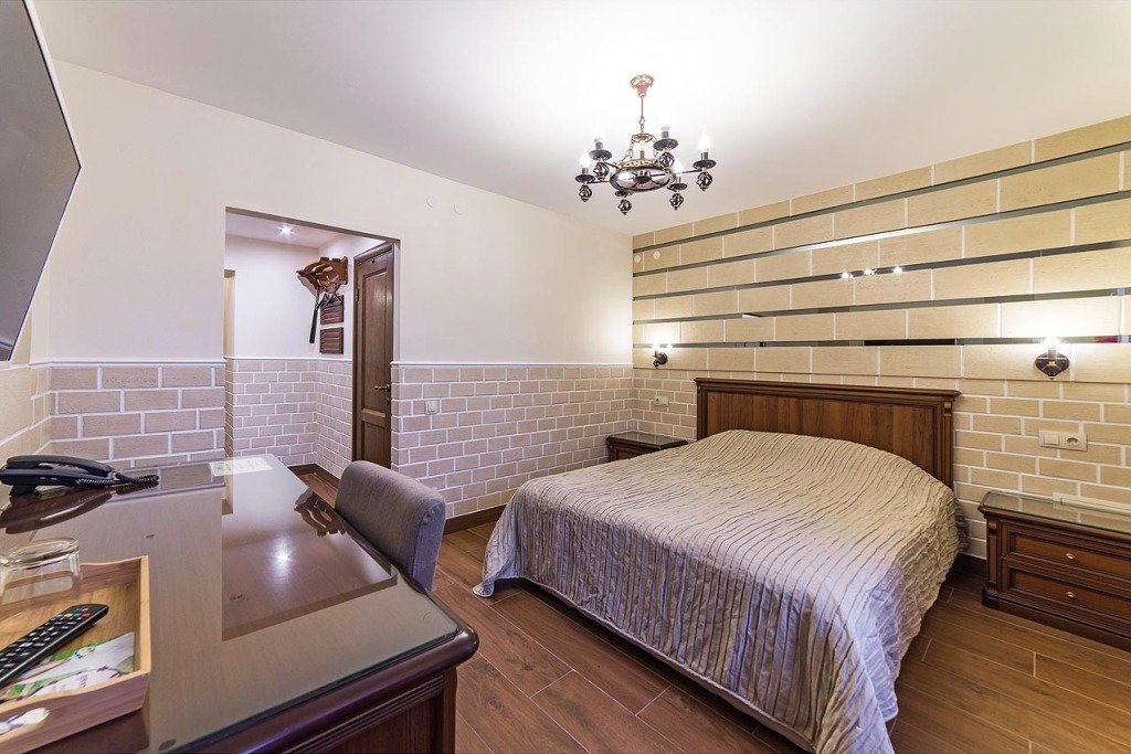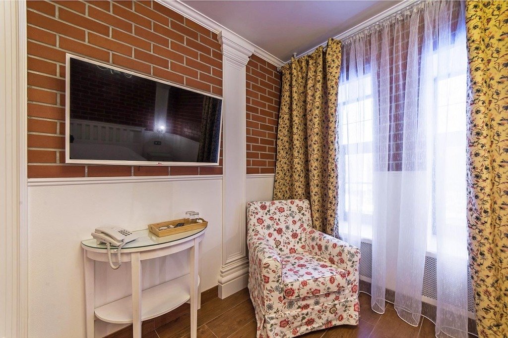 В номере вас будут ждать телевизор и тапочки. Перечисленные услуги есть не во всех номерах.