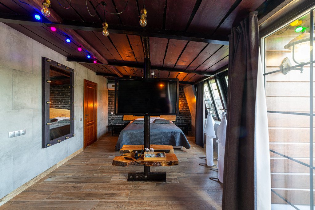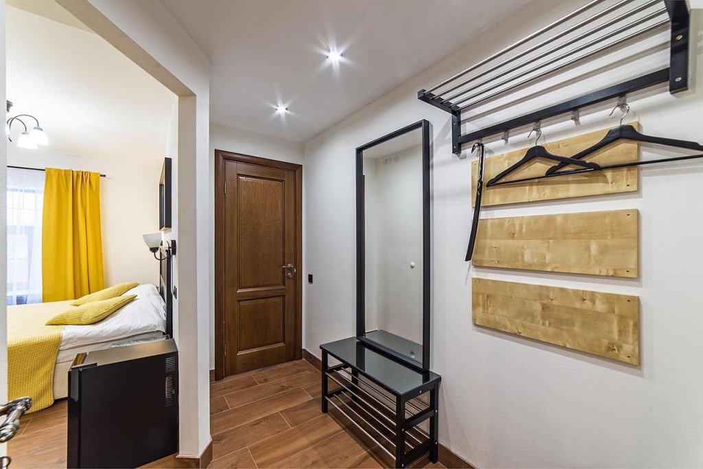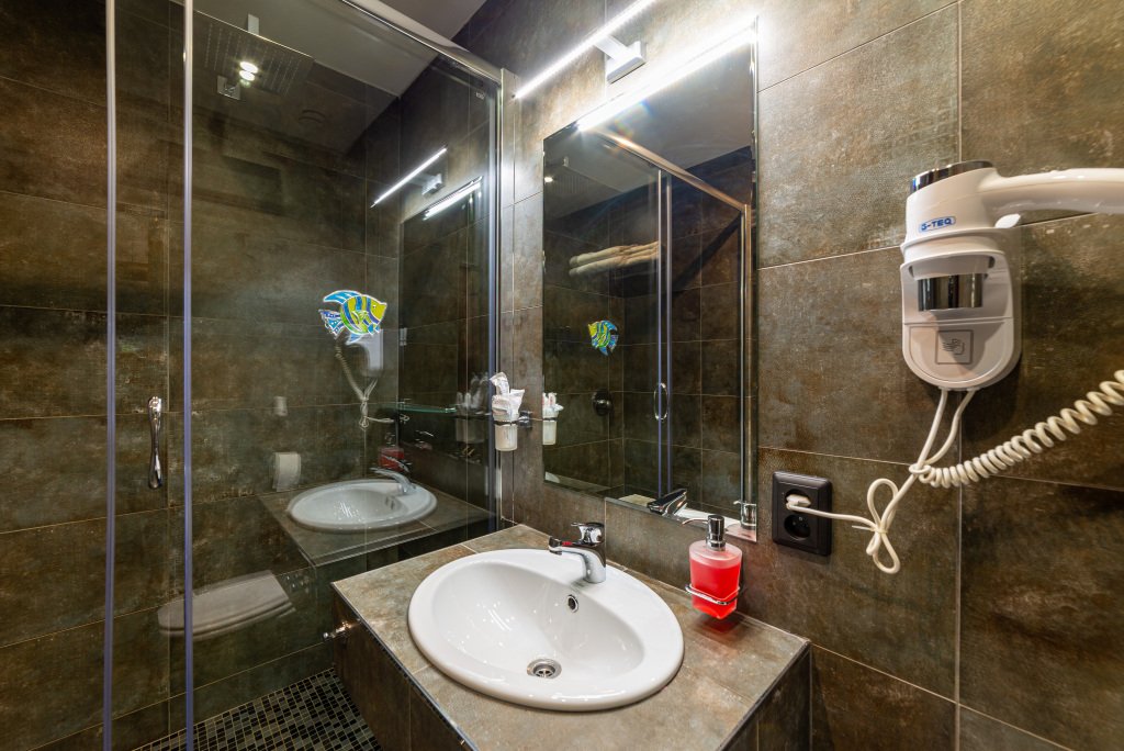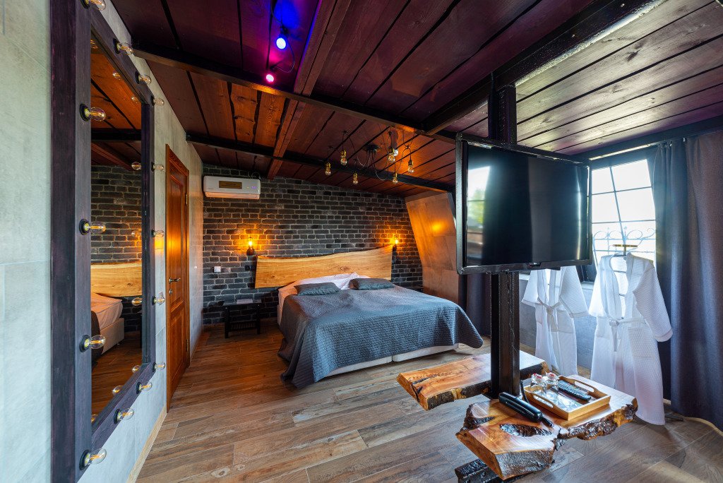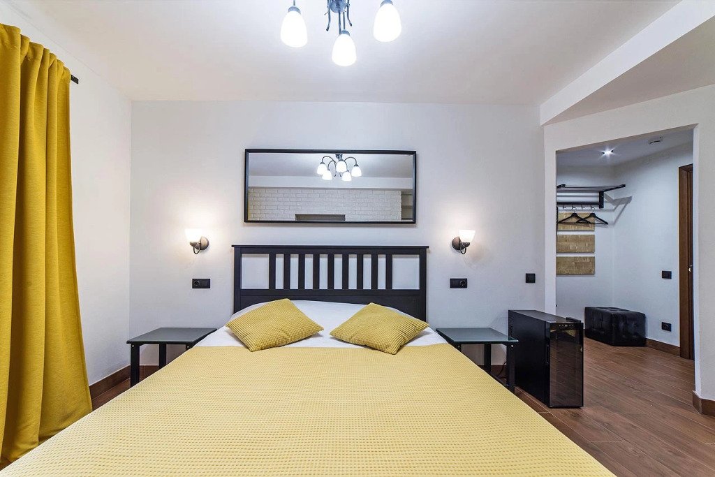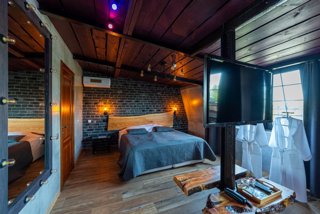 В номере вас будут ждать телевизор и тапочки. Перечисленные услуги есть не во всех номерах.
