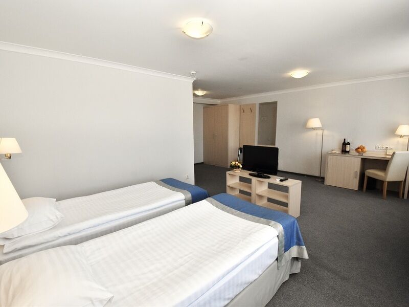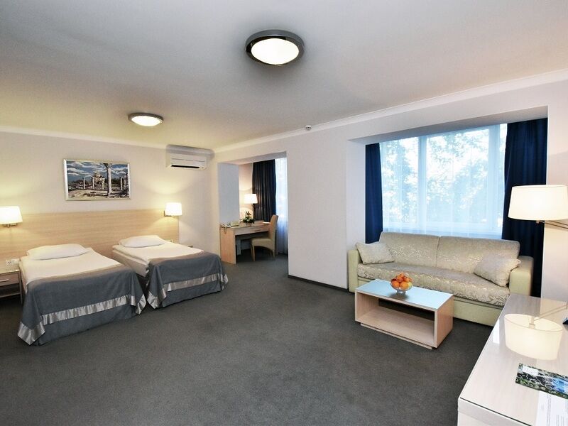 В 6-этажном здании отеля с лифтом есть крытый переход в ресторан и конференц-зал. Номерной фонд состоит из 115 номеров категорий «Классик», «Стандарт», «Супериор», «Рацио Twin, в которых можно одновременно разместить более 160 человек. Все номера укомплектованы необходимой мебелью, имеют отдельный санузел с ванной или душем, оснащены ТВ и wi-fi, холодильником с мини-баром, сейфом и другими удобствами.