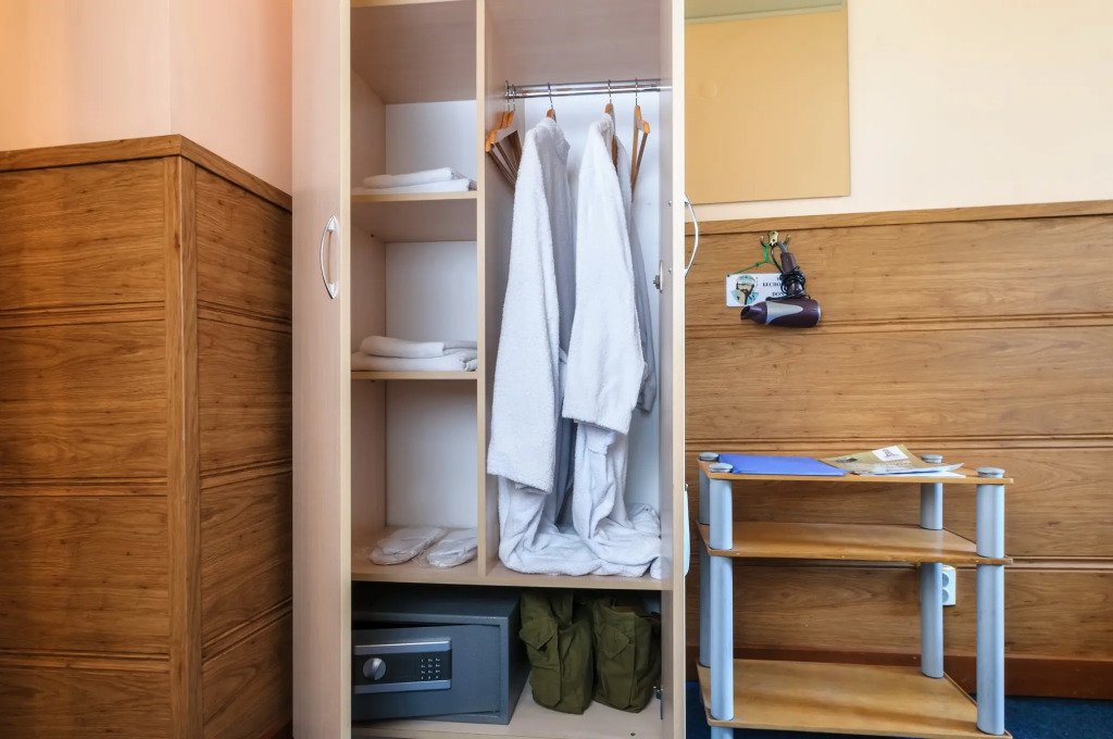 Зайдя в номер с ковровым покрытием, гости получат бутылку питьевой воды, стакан, чашку, чайник, одноразовые тапочки, халат (в категории Комфорт), мыло, шампунь, шапочки для душа, гигиенический душ, одноразовые мочалки, фен, одну из трех скоростных сетей Wi-Fi.