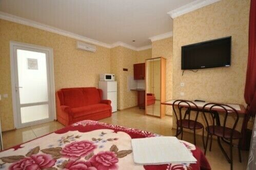 В номере: первая комната-студия с диваном и кухней, вторая комната - спальня с двуспальной кроватью. В каждой комнате ТВ (жидкокристаллический экран), интернет WI-FI, кондиционер и вентилятор, сейф, оборудованная кухня с бытовой техникой (холодильник, СВЧ, плита, эл. чайник, посуда). Санузел с горячей водой круглосуточно (ванная джакузи с гидромассажем, унитаз, умывальник). Автономное отопление (газовый котел).