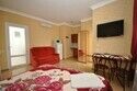 Расположен в новом доме. В номере: двуспальная кровать, прикроватные тумбочки, кресло-кровать или диван (как дополнительное спальное место), зеркальный шкаф, кабельное ТВ (жидкокристаллический экран), интернет WI-FI, кондиционер, сейф. Оборудованная кухня с бытовой техникой (СВЧ, холодильник, эл. чайник) и посуда. Санузел в кафеле - унитаз, умывальник, ванная. Есть балкон.