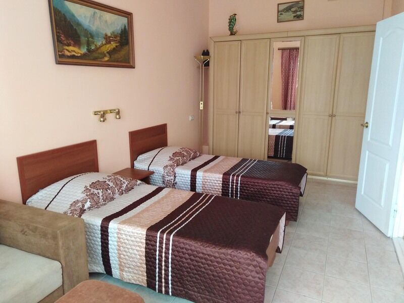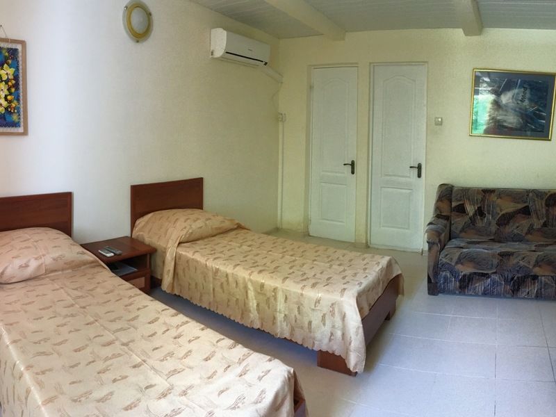 Номера есть с двуспальными и раздельными односпальными кроватями.Смена белья и полотенец по графику, уборка в номерах по требованию.