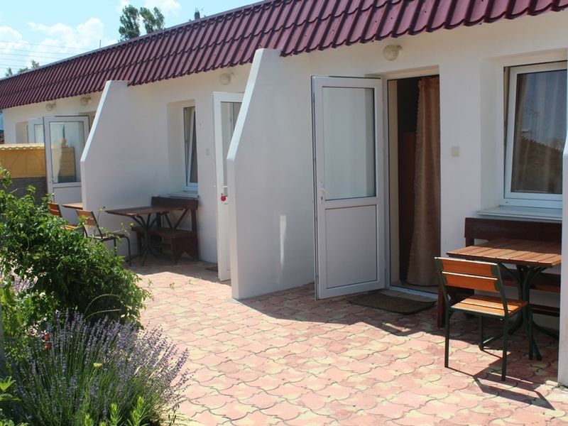В доме: большой холл, холодильник, душ, туалет, телевизор. Перед домом площадка с летней мебелью для отдыха под большим зонтом. Дома на 7 основных мест, забронировать можно по тарифу до 5-ти основных мест. Смена белья и полотенец по графику, уборка в доме по требованию.