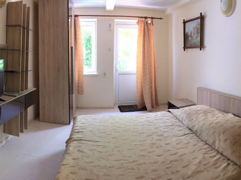 ДостоинстваОчень много зелени на территории, плюс она закрытая. Пляж большой! Очень понравился, потому что он еще и песчано-галечный, а море чистое. Питаться нужно было самостоятельно. Персонал при необходимости помогал. Комфорт номер для двоих человек был чистый, имелось всё необходимое. Для семей предлагают домики также двухкомнатные, там ещё есть небольшая кухня. В центр в Севастополь можно добраться примерно за 20 минут. Сначала на автобусе, а потом на трамвайчике.
