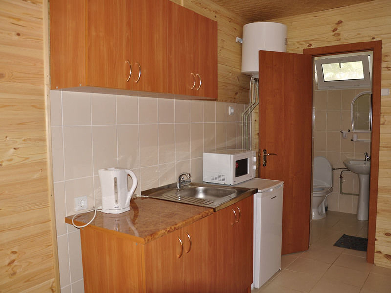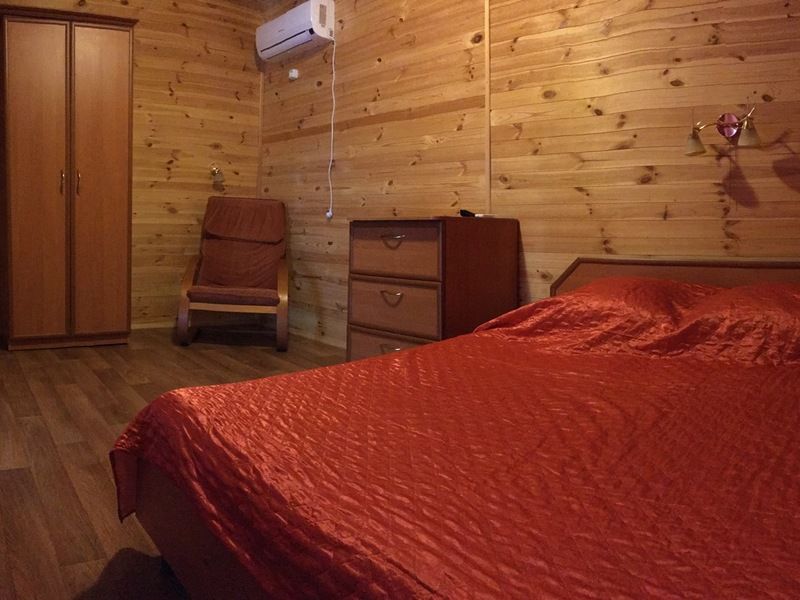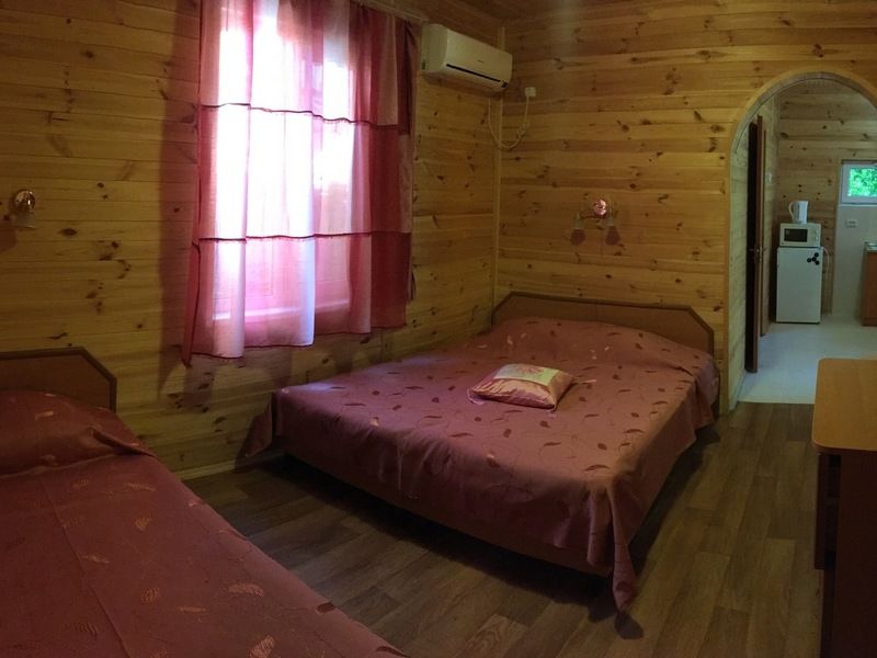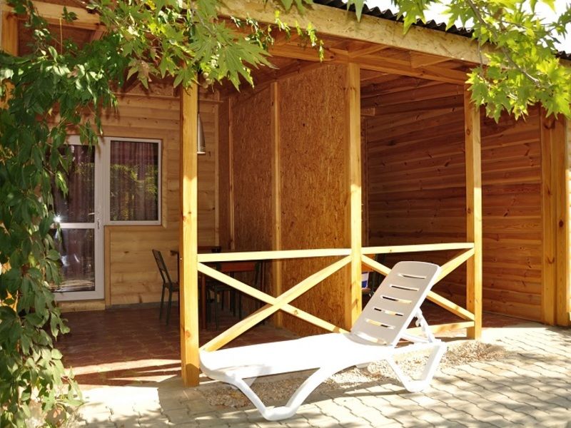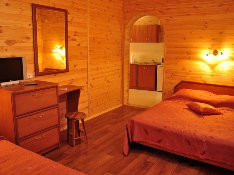 Одноэтажные коттеджи из дерева с 1-но, 2-х и 3-х местными номерами, с отдельными выходами на террасу с мебелью для отдыха.