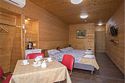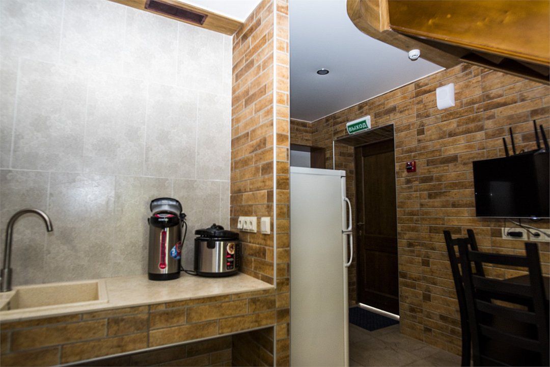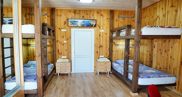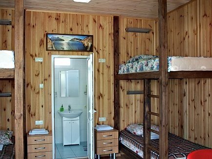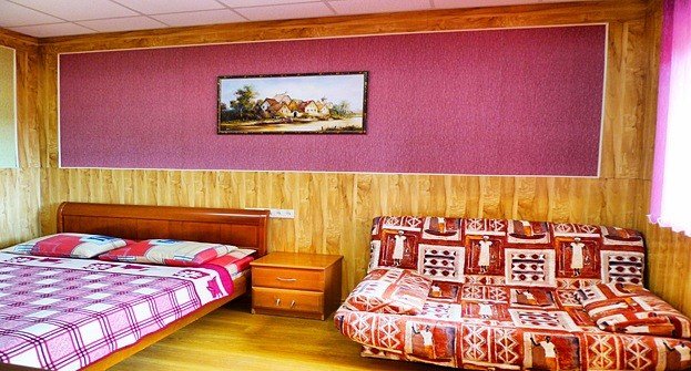 Просторный 2-х ярусный номер. На первом этаже небольшая кухня, на которой есть все для приготовления пищи. Помимо посуды на кухне есть холодильник, мультиварка и термопот. На втором ярусе находится 2-х спальная кровать и односпальная. На первом ярусе две односпальные кровати. Номер со всеми удобствами. Есть своя огороженная веранда с деревянной мебелью для отдыха и сушилкой для белья. Номер рассчитан только для проживания семьи, и не сдается компаниям для проведения праздников.Услуги и удобства