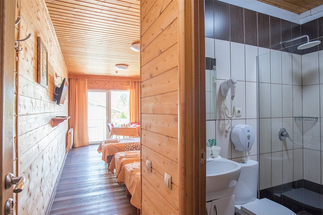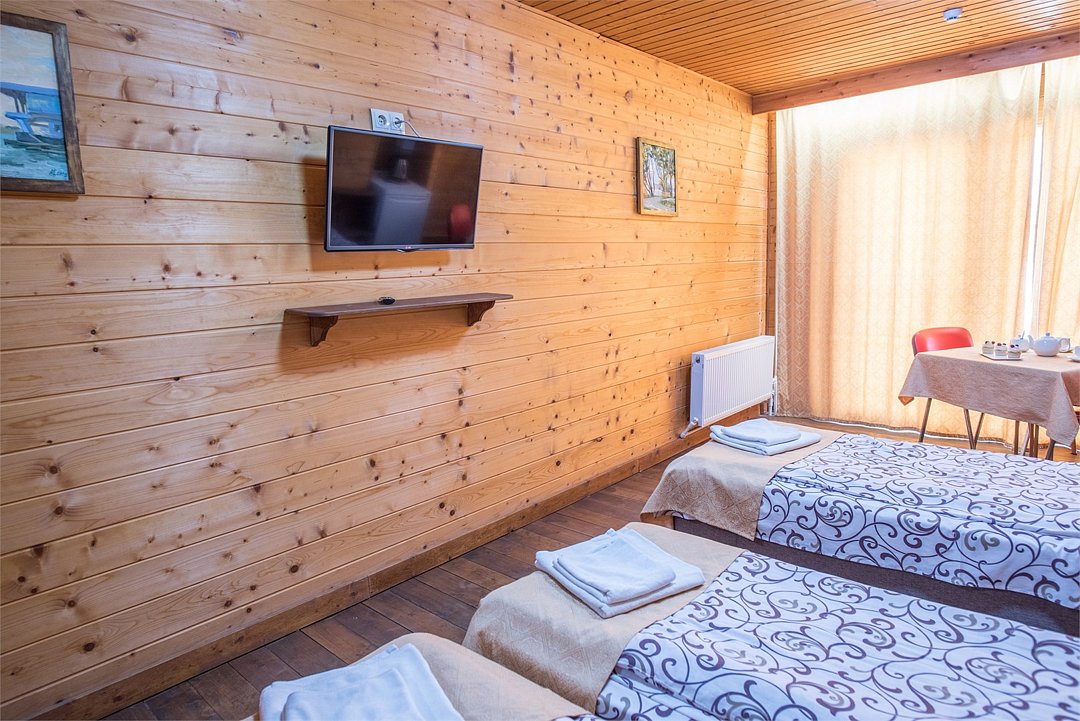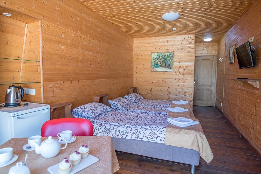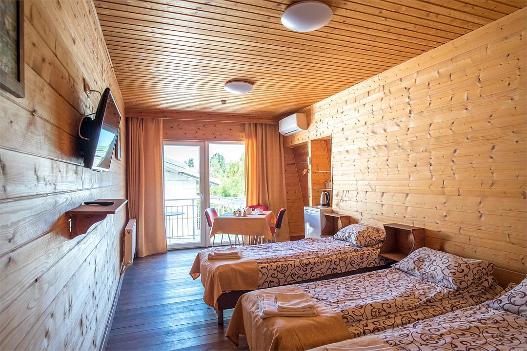 Номер "Лесной" находится на втором этаже, с балконом, на котором стоит деревянная мебель для отдыха. В номере все удобства. Отлично подойдет для семьи с ребенком. При желании кровати можно сдвинуть.Услуги и удобства