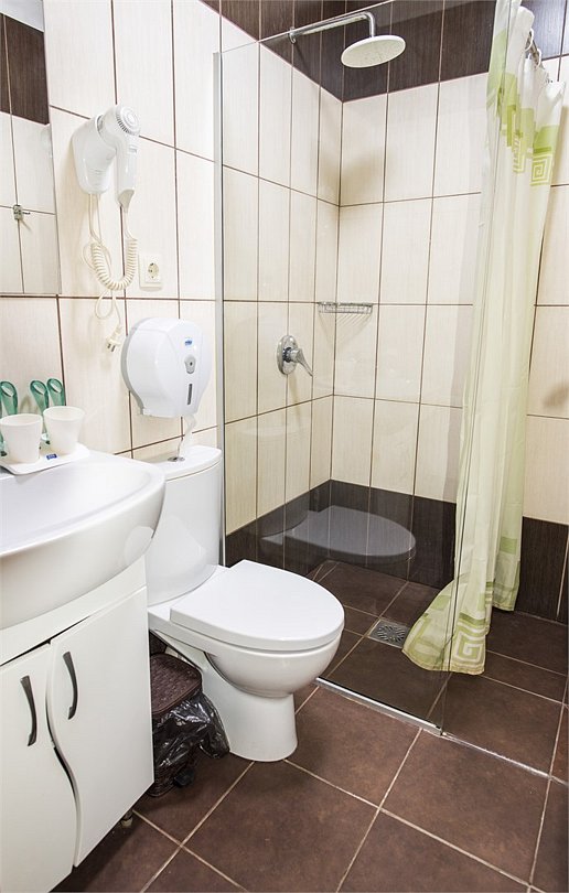 Wi-Fi, холодильник, кондиционер, фен, душевая кабина, санузел, банные полотенца, балкон, стулья, вешалки, обеденный стол, зеркало, сейф, чайник, три односпальные кровати, вид во двор, стул, стол, туалет, телевизор с плоским экраном, можно с питомцамиВ номере
