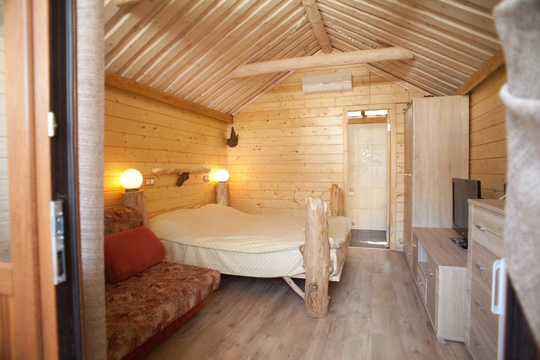Номер "Уютный" находится на первом этаже, с отдельным входом. Рядом стоит деревянная мебель для отдыха. В номере все удобства. Отлично подойдет для семьи с ребенком.Услуги и удобства