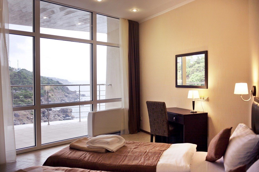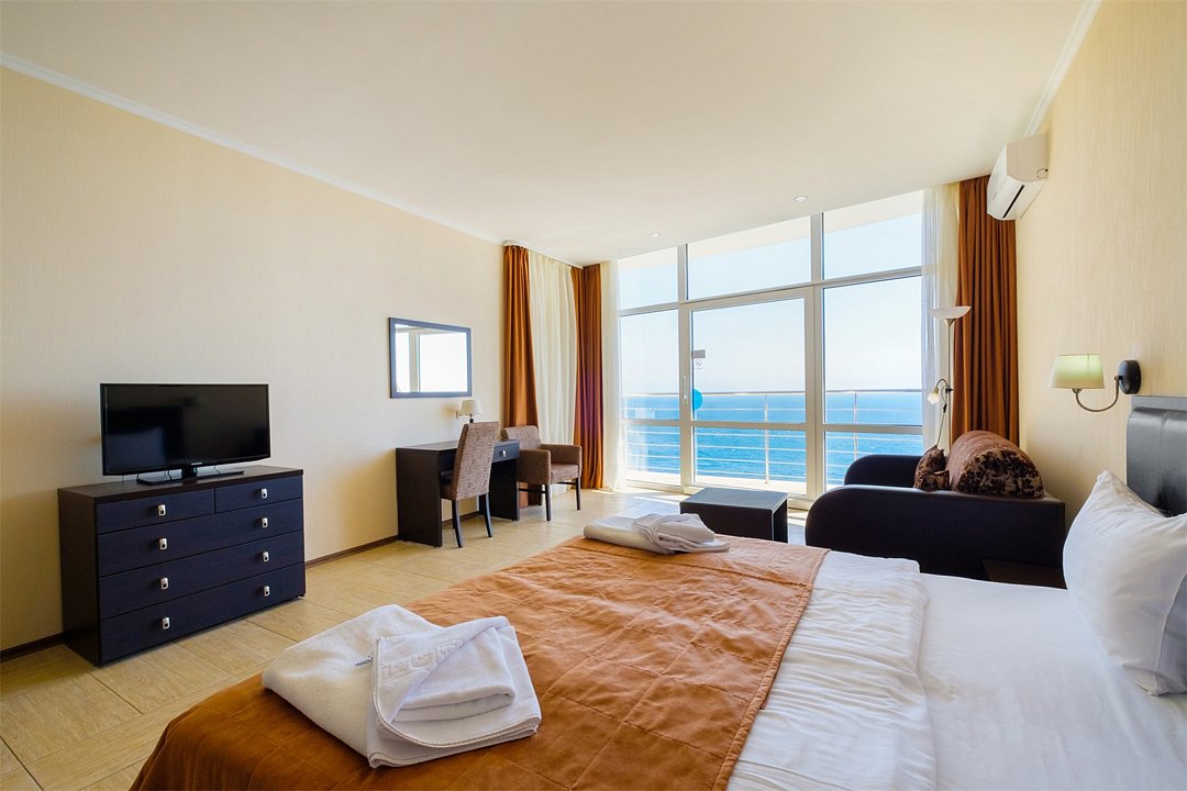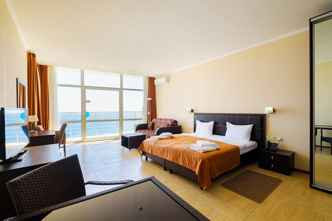 Wi-Fi, балкон с красивым видом, балкон с шезлонгом, две односпальные или большая двуспальная кровать, вид на море, панорамные окна, кресло-кровать, угловой диван-кровать, можно с питомцамиВ номере
