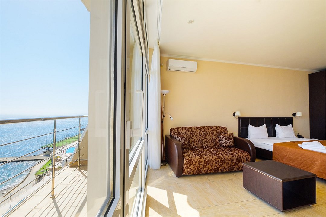 Wi-Fi, балкон, двуспальная кровать, вид на море, панорамные окна, внутренний телефон, двуспальный раскладной диван-кровать, можно с питомцамиВ номере