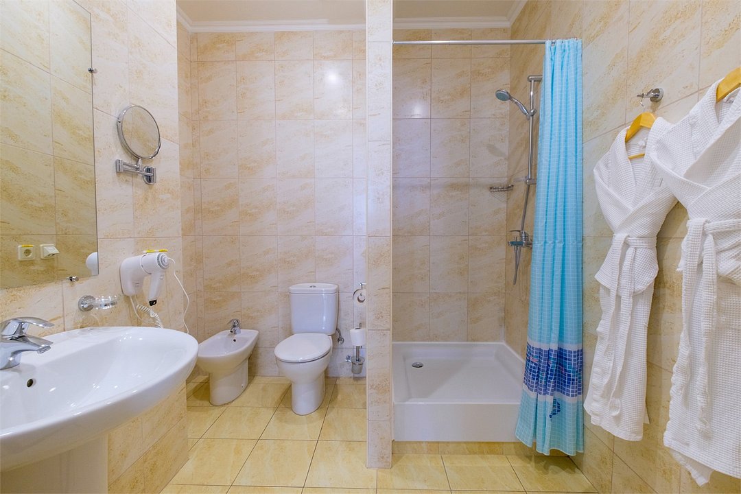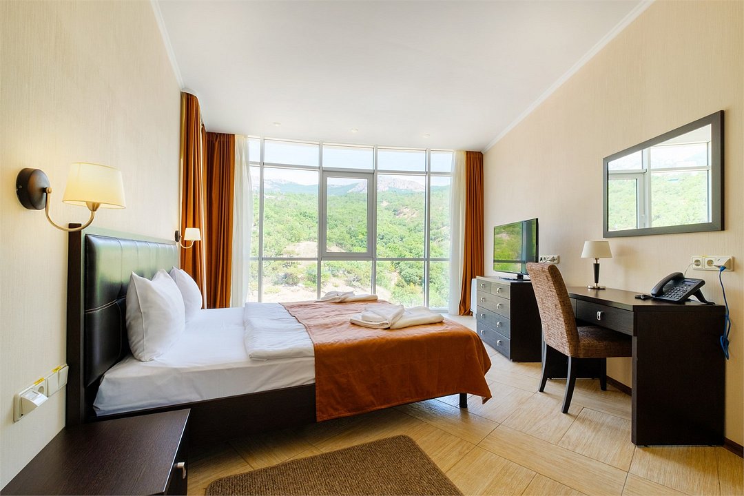 телевизор, Wi-Fi, холодильник, кондиционер, настольные лампы, фен, электронные замки, утюг, обогреватель, душевая кабина, биде, халаты, тапочки, косметические средства, две односпальные или большая двуспальная кровать, гладильная доска, вешалки, журнальный столик, письменный стол, багажная тумба, зеркало, комод, чайный набор, сейф, чайник, унитаз, раковина, питьевая вода, душ, вид на сад, кресло, стаканы, столовые приборы, стул, тумба, туалетные средства, сплит-система, цифровое тв, внутренний телефон, шкаф-купе, вид на горы, фанкойл, морозильная камера, вешалки-плечики, затемняющая штора, окна от пола до потолка, зеркало в полный рост, можно с питомцамиВ номере