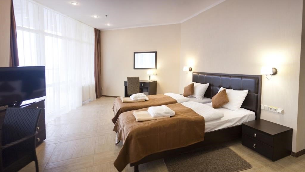 Номера 1 категории СТАНДАРТ ГОРЫ расположены в корпусе БАШНЯ. Площадь номеров от 30 до 34 м². Номер состоит из одной комнаты c гостевой и спальной зонами, просторной ванной комнаты с душевой кабинкой, вместительной гардеробной. Все номера данной категории с двумя односпальными (TWIN) кроватями и рассчитаны на проживание двух гостей. Номера без балконов. Количество основных мест: 2. Гости, выбравшие эту категорию, насладятся оригинальным дизайном, уютным интерьером, прекрасным видом на горы и парк.Услуги и удобства