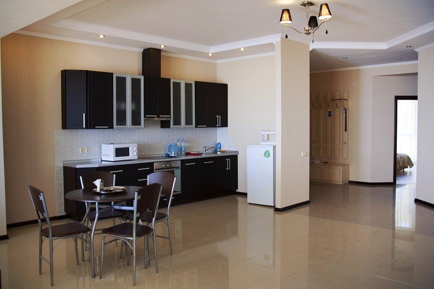 Номера категории АПАРТАМЕНТ 3 – это просторный современный номер с двумя большими спальнями (вид на горы), обеденной зоной с уютным диваном(вид на море), оборудованной всем необходимым кухней, ванной комнатой с душевой кабинкой, террасой. Площадь такого номера составляет 160 м². Останавливаясь в апартаментах можно насладиться атмосферой тишины и комфорта, забыть о повседневной жизни. Гости, выбравшие эту категорию, насладятся оригинальным и уютным дизайном, панорамными окнами и прекрасным видом на море и набережную комплекса. Каждый номер имеет просторную террасу с мебелью из искусственного ротанга. Этот вариант идеальный для семьи или двух пар, приехавших на совместный отдых.Услуги и удобства