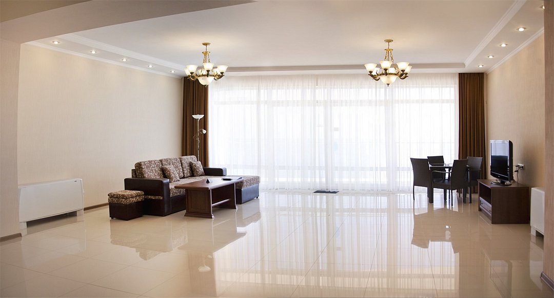 Номера категории АПАРТАМЕНТ 4 – это самые большие и уютные номера нашего комплекса. Площадь от 170 до 220 м². Номер включает в себя большую уютную гостиную (вид на море), три просторных спальни, прекрасно оснащенную современную кухню с обеденной зоной, удобные и вместительные гардеробные. В каждом номере 2 просторные ванные комнаты. Гости, выбравшие эту категорию, насладятся оригинальным и уютным дизайном, панорамными окнами и прекрасным видом на море и набережную комплекса. Каждый номер имеет просторную террасу с мебелью из искусственного ротанга. Этот вариант размещения идеально подходит для большой семьи или компании.Услуги и удобства