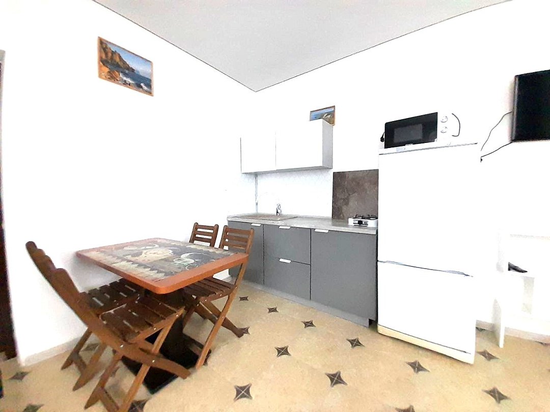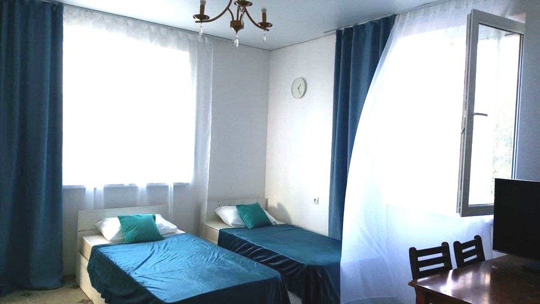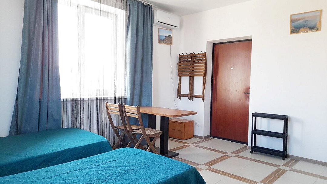 Просторные, светлые двухкомнатные апартаменты семейного типа с отдельными спальнями, кухней, санузлом, балконом. Мебель и предметы обихода рассчитаны на 4-5 человек. В номере двухспальная кровать 180 см шириной и две односпальные кровати по 90 см., с ортопедическими матрасами, раскладной диван-малютка. Полноценная отдельная квартира в вашем полном распоряжении в непосредственной близости к Яшмовому пляжу и Свято-Георгиевскому мужскому монастырю. Гипоаллергенное пространство. Большой балкон с чайным столиком и шезлонгами. Возле дома можно припарковать автомобиль, в дворе площадка для отдыха и детских развлечений, гриль-мангал. Из окон открывается панорамный вид на Фиолент и море.Услуги и удобства