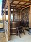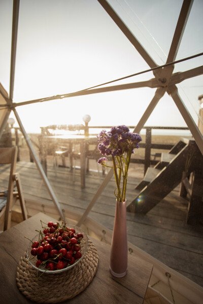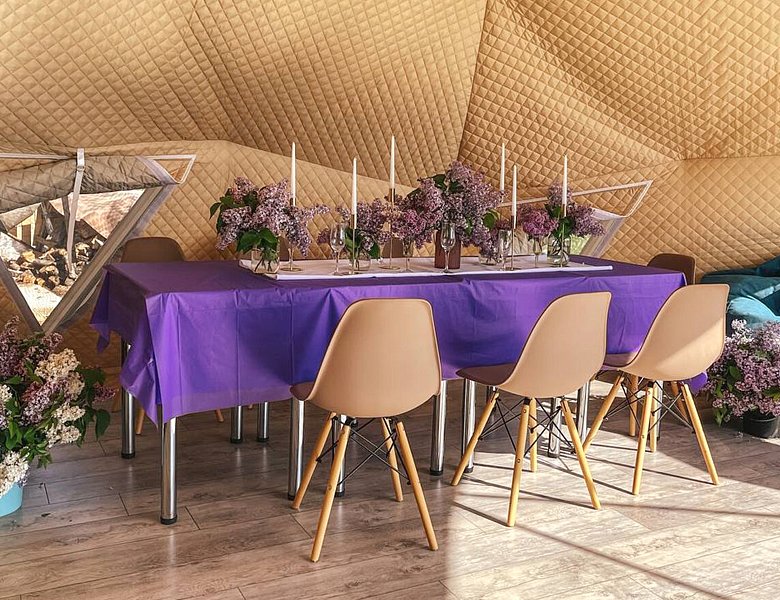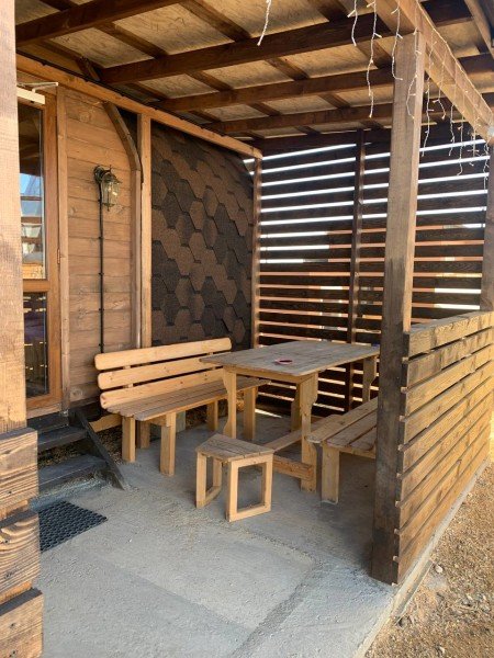 Глэмпинг-отель предоставляет крытую беседку с большим столом и скамейками. Основная цель беседки заключается не только в защите от дождя и яркого солнца, но и в создании комфортной атмосферы для обеда и продолжения приятных бесед на улице.