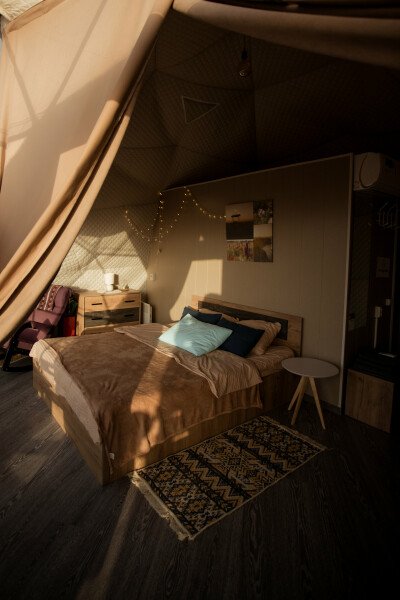 Глэмпинг «Pera» работает круглый год, предлагая своим гостям комфортные условия независимо от времени года. Летом в шатрах свежо и прохладно, а зимой тепло и уютно — в каждом номере есть все необходимое для полноценного отдыха, включая горячий душ, санузел, посуду, наборы мягких полотенец и пледов. Для вашего удобства на территории глэмпинга также имеются велосипеды в аренду, площадка для занятий йогой и медитацией, гриль-дом и мангальная зона. Весь комплекс окружен атмосферой умиротворения и гармонии, позволяя гостям полностью расслабиться и перезарядиться энергией природы.