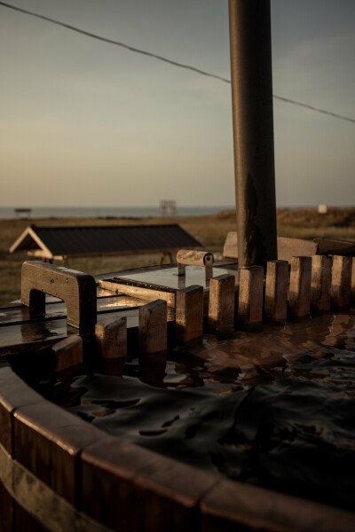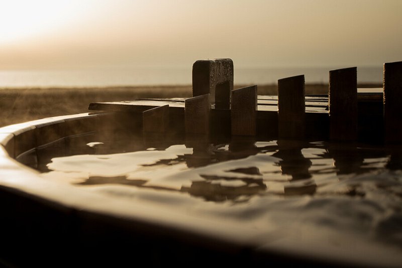 Согревающая и расслабляющая японская бочка фурако на свежем воздухе с волшебным видом на бескрайнее море. Входит в стоимость сферы, но можете забронировать дополнительную.