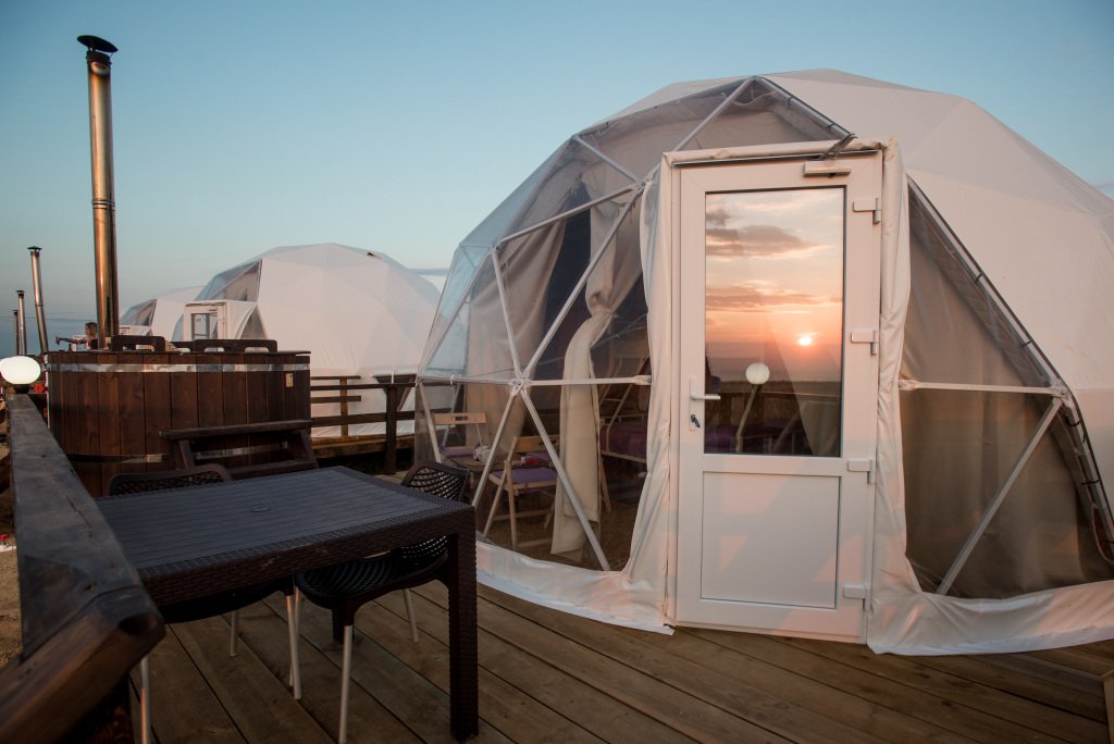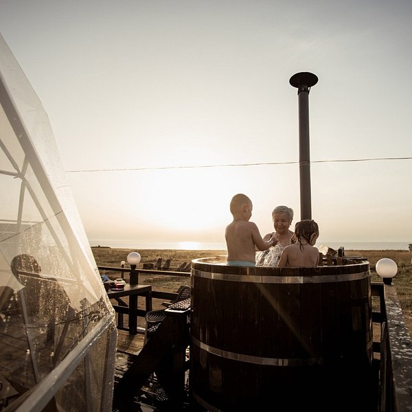 Каждый шатер глэмпинга оборудован персональным горячим источником — купелью фурако, что позволит вам полностью расслабиться и насладиться термальными водами в окружении живописной природы. Всего в пяти минутах ходьбы находится пустынный чистый пляж, где вы сможете насладиться прозрачной водой Черного моря. Для ценителей традиционных русских процедур в глэмпинге имеется своя кедровая баня на дровах с панорамными окнами, откуда открывается завораживающий вид на море.