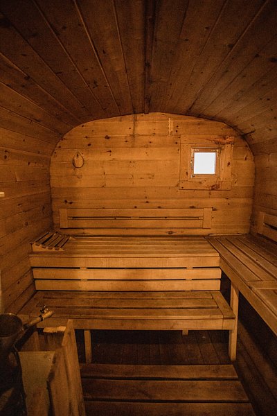 На территории есть две бани-баня-бочка и царская баня с купелью.