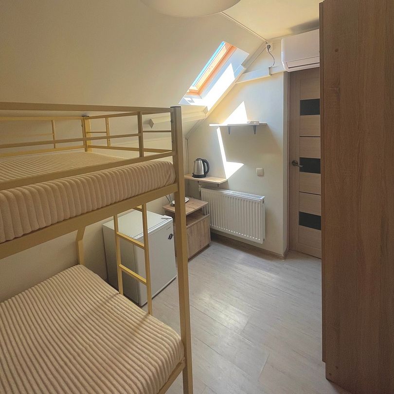 Пятиместный стандартный номер площадью 20 м² с видом во двор. Подходит для размещения пяти человек (пять основных мест). Имеет спальню с приятным интерьером.