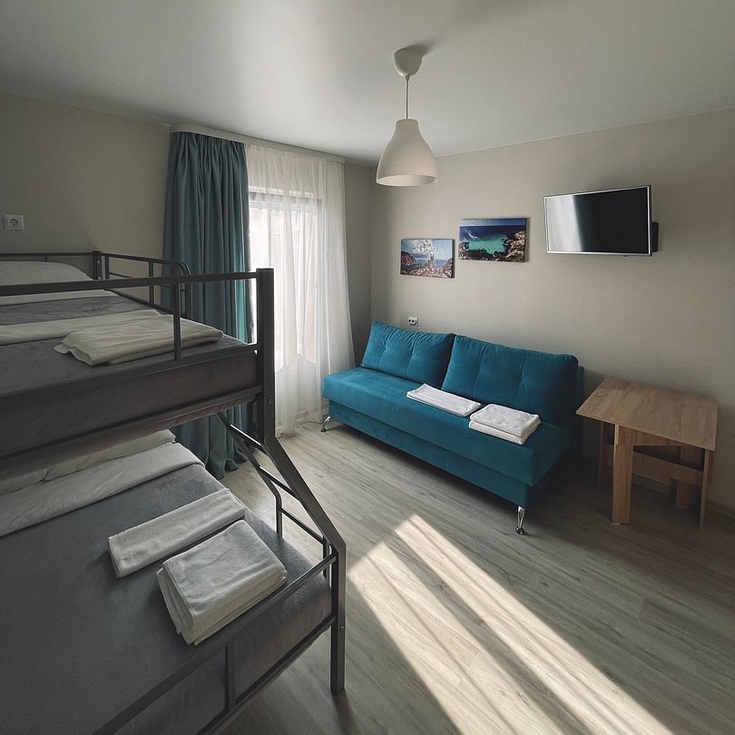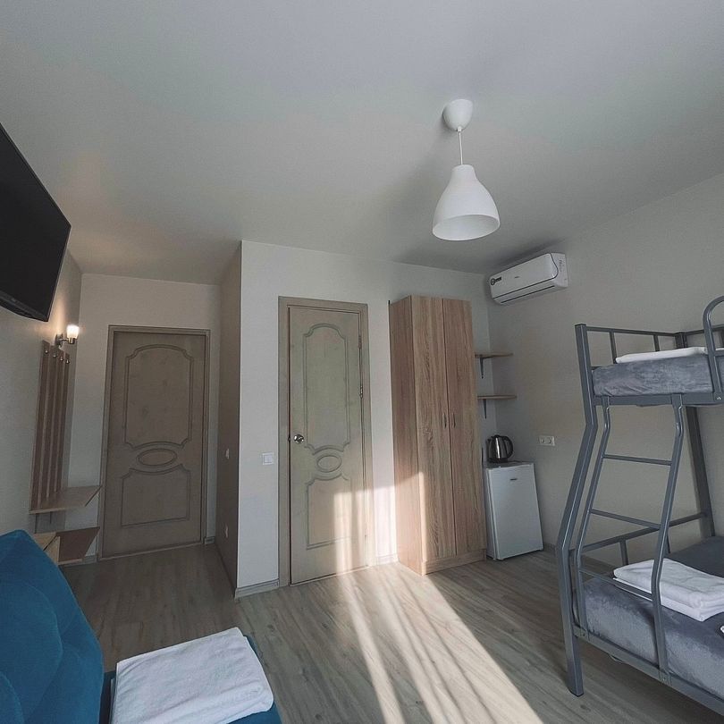 Шестиместный стандартный номер площадью 40 кв.м с видом во двор.Подходит для размещения 6 человек.