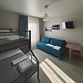 В номере: одна двуспальная, одна односпальная кровати и один двуспальный диван. Имеется телевизор, кондиционер, шкаф, вешалка, зеркало, обеденный стол, чайник, холодильник, стулья. Индивидуальная ванная комната: душ, раковина, туалет.