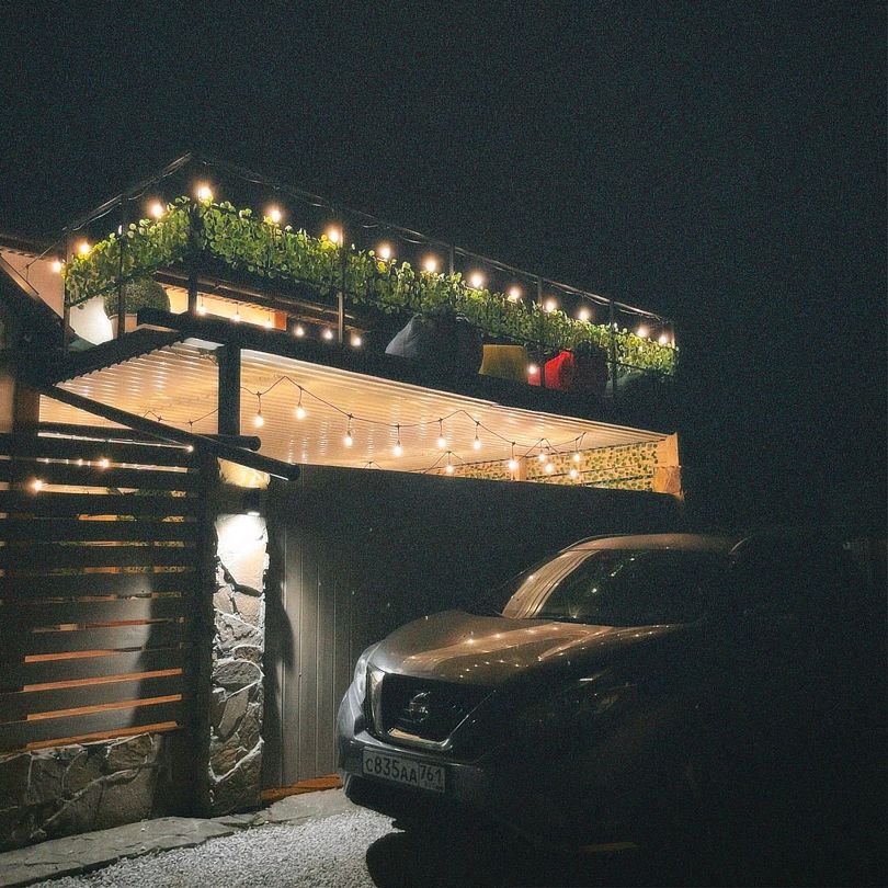 На территории гостевого дома раскинулась уютная терраса, где можно насладиться свежим воздухом и тишиной. Здесь же расположена зона барбекю с мангалом, позволяющая отдыхающим приготовить ароматные блюда и разделить их с близкими в теплой и дружеской атмосфере.