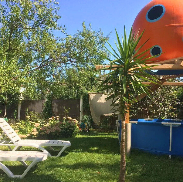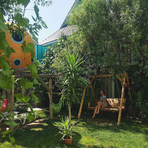 На территории гостевого дома «Добрый Шкипер» разбит сад и работает снэк-бар. Для детей обустроена игровая площадка.