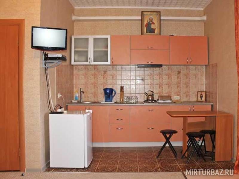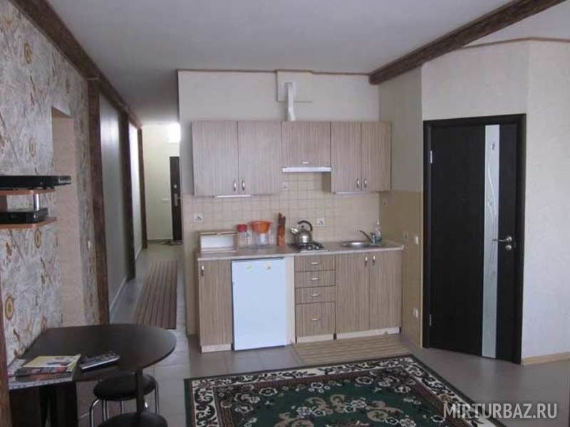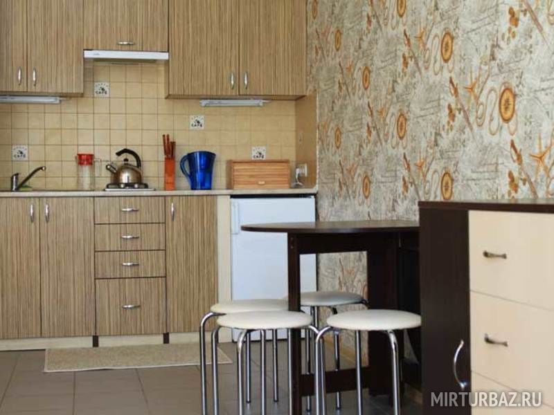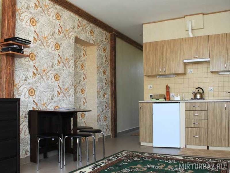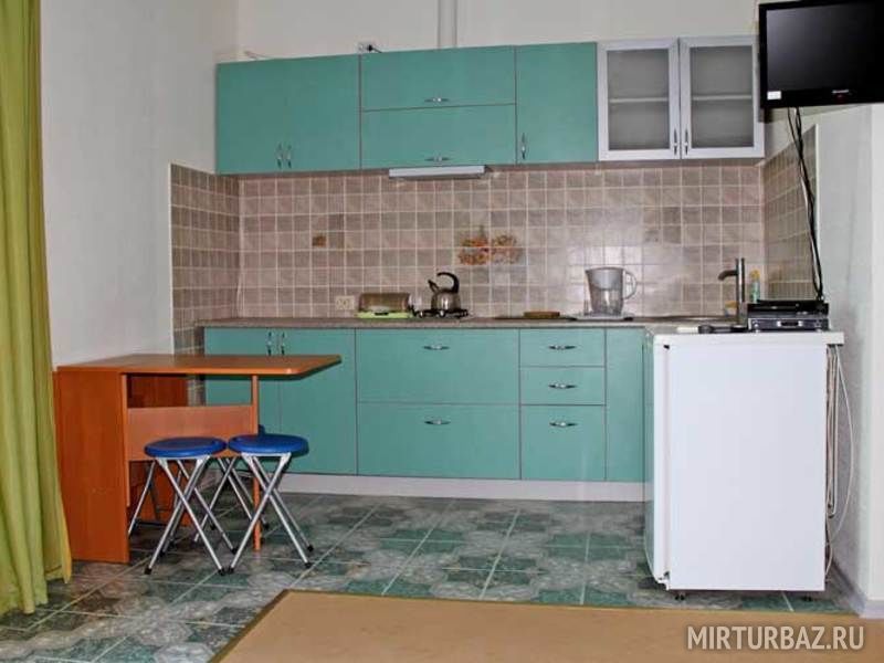 - Кухня: набор кухонной и столовой посуды + мини-бар (прохладительные напитки, пиво, чай, кофе, шоколад, снеки)