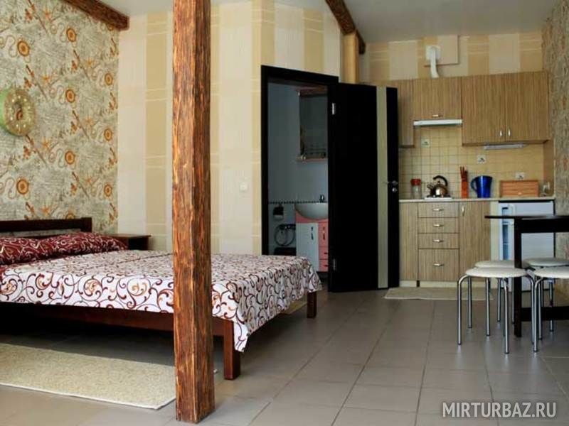 Семейный отдыхДостоинстваОчень приемлемая стоимость проживания для гостевого дома. На территории есть бассейн. Внизу в здании общая кухня и даже барная зона. Номер с кондиционером, отдельной ванной комнатой, холодильником. В общем, все необходимое для пребывания в отпуске.