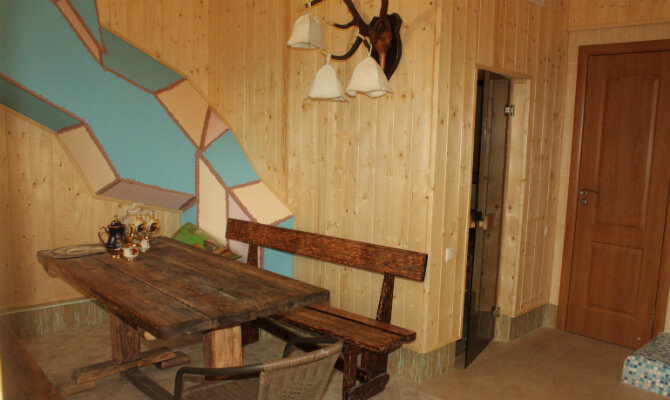 Русская парная, комната отдыха и купель.