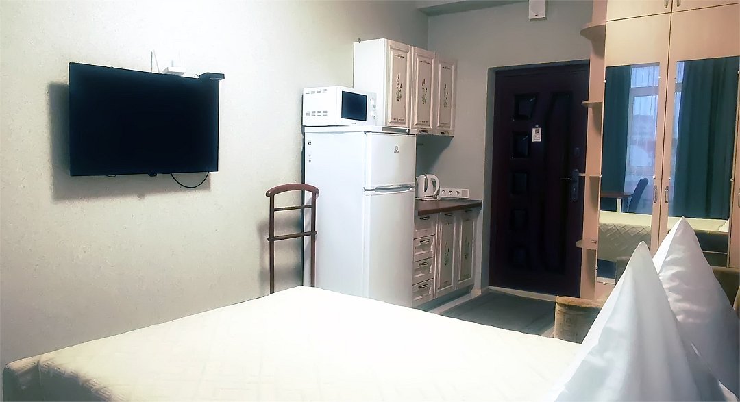 Однокомнатный двухместный номер с мини-кухней. Расположен на 9-м этаже Парк-Отеля. Панорамный вид на море, парк и город.Услуги и удобства