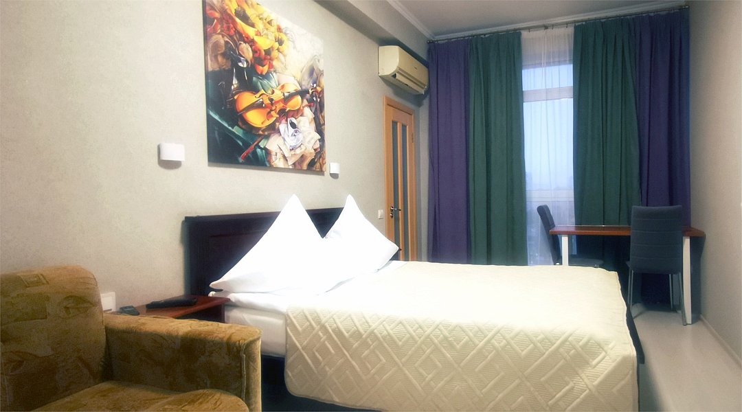 Номер находится на 2-м этаже. Панорамные окна этого номера позволят вам любоваться прекрасным видом на Парк Победы. Общая площадь номера – 30 м2. Номер предназначен для проживания 2-х человек, в случае необходимости предусмотрено дополнительное спальное место. Максимальная вместимость номера – 3 человека.Услуги и удобства