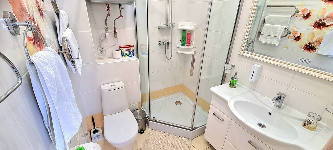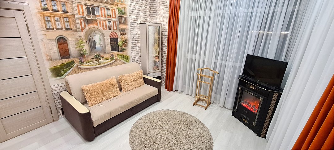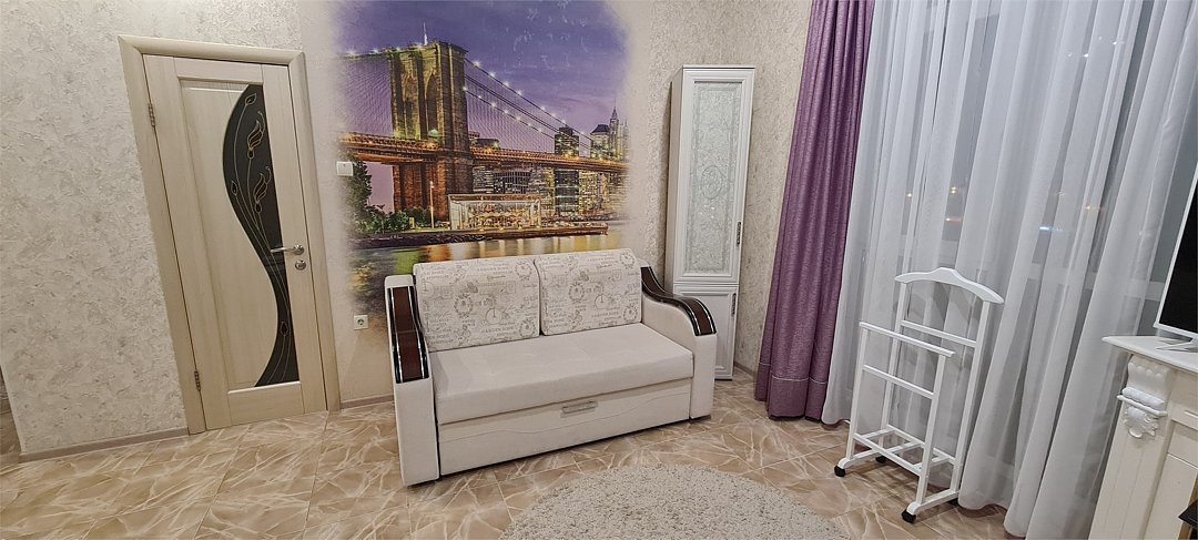 два телевизора, Wi-Fi, холодильник, кондиционер, фен, микроволновая печь, утюг, душевая кабина, водонагреватель, банные полотенца, пляжные полотенца, тапочки, двуспальная кровать, гладильная доска, стулья, шкаф для одежды, вешалки, обеденный стол, комод, чайный набор, информационная карта, меню, стиральная машина, чайник, унитаз, раковина, гостиная зона, вид на город, высокие потолки, туалетные средства, сушилка для белья, диван-кровать, раскладной диван, мини-кухня, шкаф-купе, номер для некурящих, зеркало в полный рост, можно с питомцамиВ номере