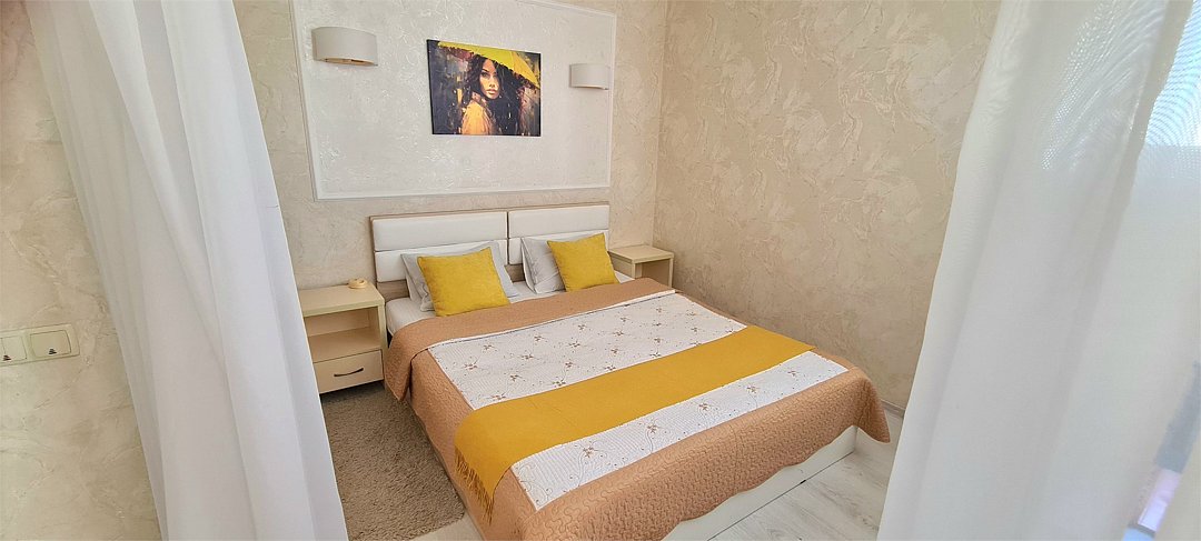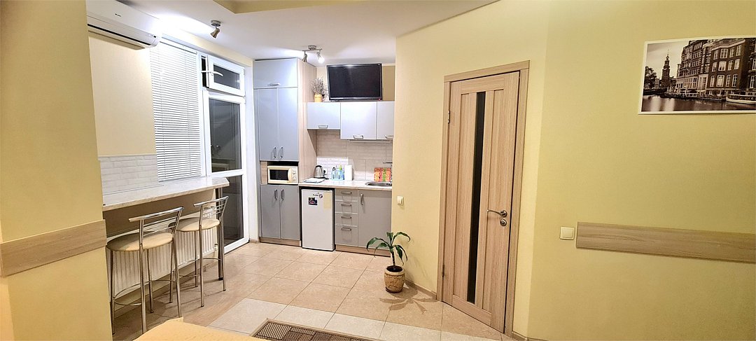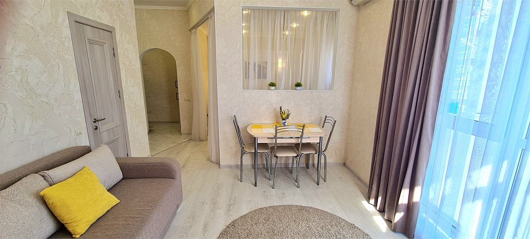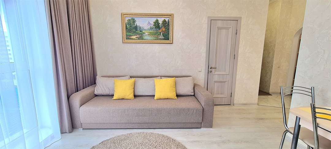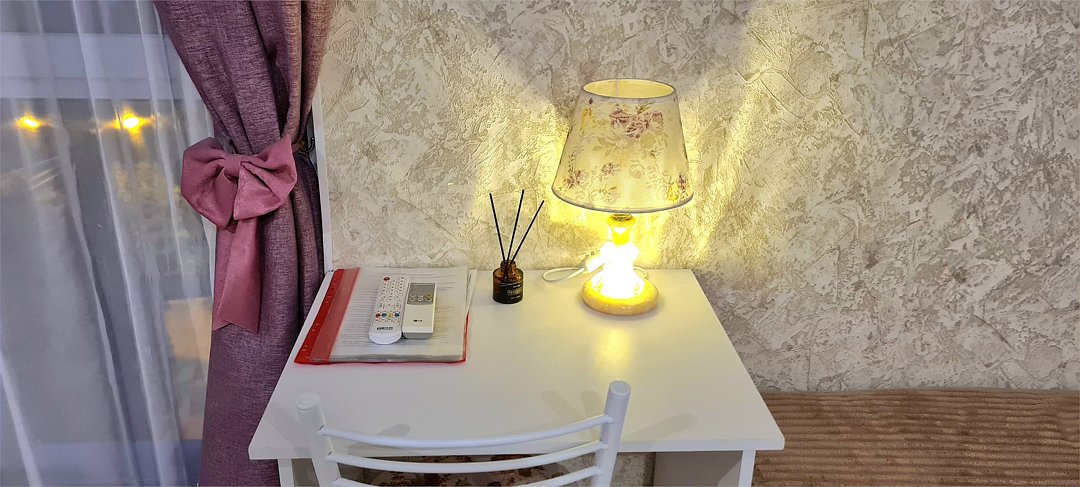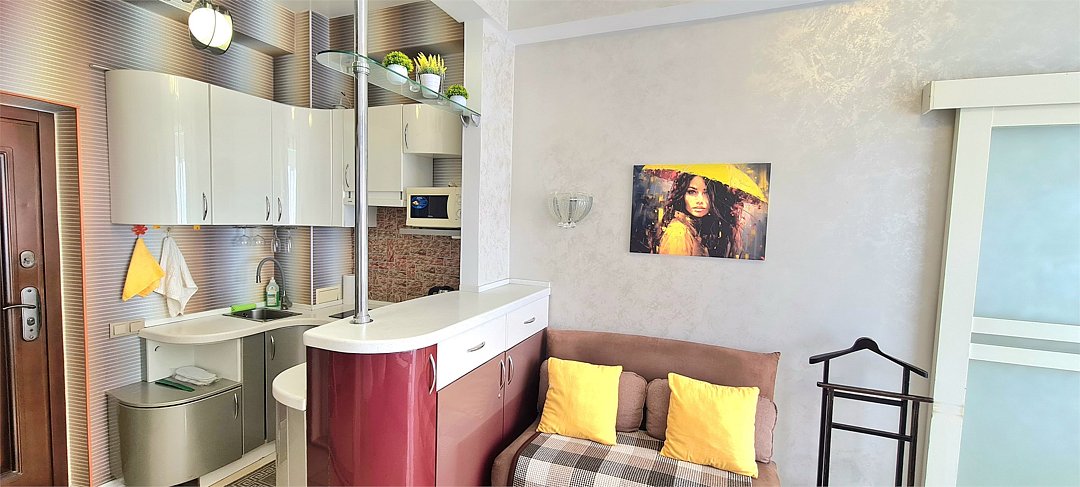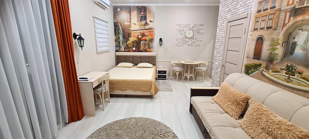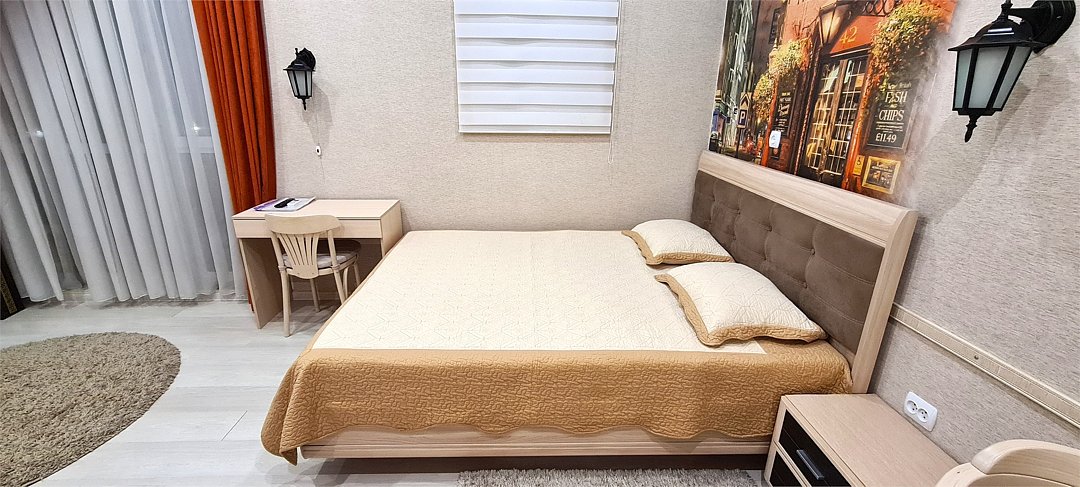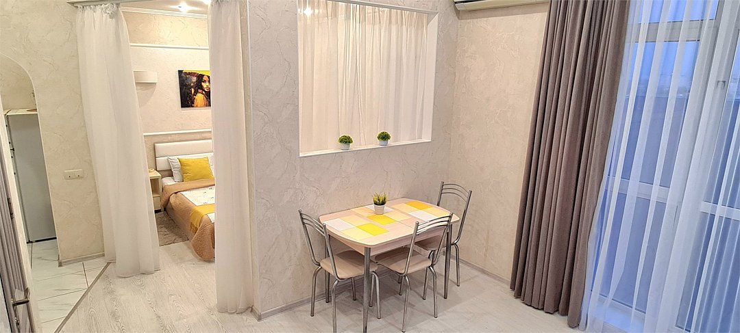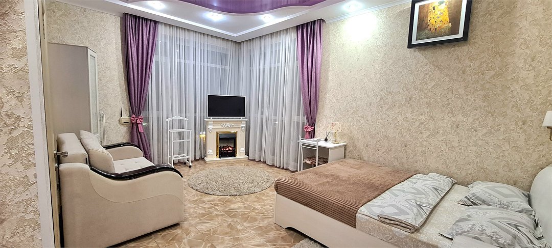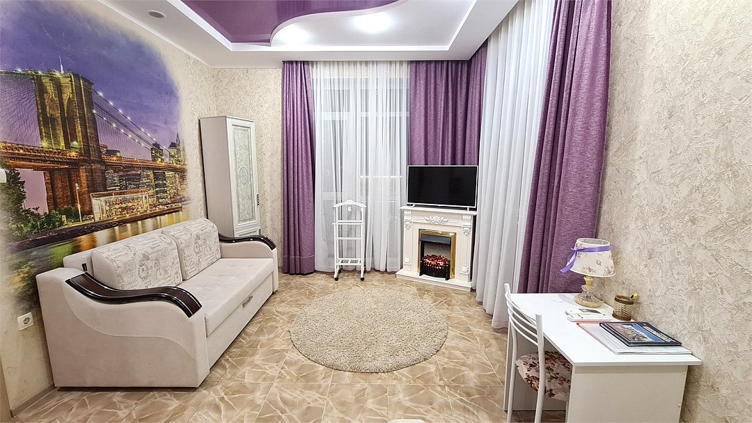 " Ночной город" номер общей пл. 30 кв.м Панорамные окна номера с видом на море и Парк Победы. ВМЕСТИМОСТЬ номера до 3-х человек - двуспальная кровать 160*200 - диван-кровать с ортопедическим основанием 145 *200. В НОМЕРЕ ДЛЯ УДОБСТВА : мини-кухня с мойкой, микроволновка, холодильник, эл. чайник , чашки, тарелки, разделочная доска, столовые приборы, бокалы, рюмки , фужеры, штопор, моющие средства, салфетки, бумажное полотенце, чай, сахар, соль. В КОМНАТЕ стоит шкаф для белья с полками, письменный стол со стулом, прикроватный столик на колесиках, электро-камин, плоский телевизор, стойка для одежды , обеденный стол со стульями, кондиционер, WI-FI ВАННАЯ КОМНАТА с душевой кабиной и с тропическим душем , водонагреватель на 100 л., накладная раковина с зеркалом + стиральная машинка капсулы прилагаются - доп. услуга ПРЕДОСТВЛЯЕМ ГОСТЯМ: полотенца, шампунь, жидкое мыло, гель для душа, фен, ватные диски, туалетная бумага + запасной рулон и освежитель воздуха, сушилку для вещей, фен, утюг и гладильная доска. В прихожей есть шкаф с зеркалом и с вешалками для одежды, ложка для обуви , резиновые и одноразовые тапочки Всегда поддерживается ремонт, чистота и уют, как дома.Услуги и удобства