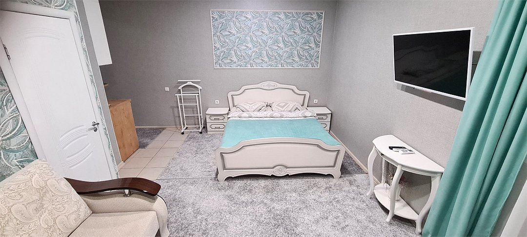 "Апартамент Серый" с балконом общей площадью 25 кв.м рассчитан на одного или двух человек. СПАЛЬНОЕ МЕСТО в номере одна двуспальная кровать 160*200 ОСНАЩЕНИЕ: мини-кухня, эл. чайник, холодильник, микроволновка, столовые приборы, кондиционер, ЖК-телевизор, письменный стол и стул, шкаф купе зеркальный для одежды. В ВАННОЙ КОМНАТЕ: душевая, умывальник с зеркалом, стиральная машинка и порошок, фен, полотенца, шампунь, жидкое мыло, освежитель воздуха и туалетная бумага. В прихожей шкаф для одежды, сейф, зеркало с тумбой, гладильная доска и утюг. На балконе стол и два стула.Услуги и удобства