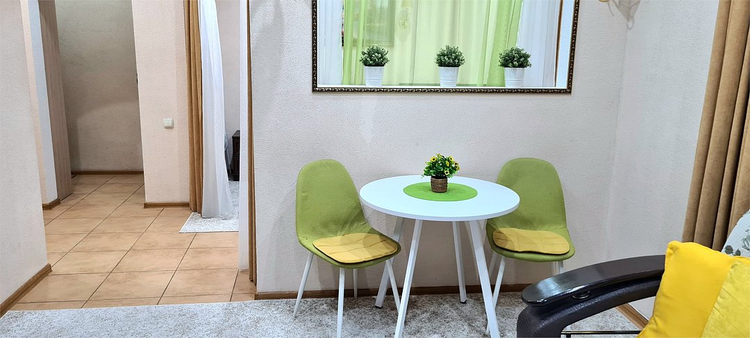 Номер общей пл. 30 кв. м.. СПАЛЬНЫЕ МЕСТА в номере: - двуспальная кровать 160*200 - доп. спальное место кресло-кровать. В НОМЕРЕ: мини-кухня, микроволновка, холодильник, эл. чайник, чайный набор ( чай, сахар ), кондиционер, стол обеденный, два стула-кресла, Смарт ТВ. ВАННАЯ КОМНАТА : душевая, умывальник с зеркалом, унитаз, шампунь, гель для душа, жидкое мыло, полотенца, стиральная машинка, порошок и фен. В КОРИДОРЕ : шкаф с зеркалом и тумбой. В шкафу сейф, гладильная доска и утюг + сушилка для белья. - WI-FI - тапочки одноразовые Всегда чисто и уютно.Услуги и удобства
